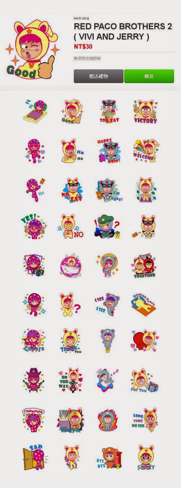 1、本人設計之Red paco LINE貼圖紅帽帕可兄弟 將有7組在 LINE販賣 (目前已三組120張全球販賣) 開始為各類產品代言共創商機
